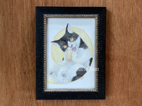 西藤燦・山口真理子ふたり展『Are You Happy?』通販作品リスト 西藤燦・山口真理子ふたり展『Are You Happy?』の通販用作品リストです。 作品写真をタッチするとフルサイズで表示されます。 ※表記サイズは額込みでおおよその目安です。 ※送料はお客様のご負担となります。 ※このページは会期終了(10/20 17:00)までの公開となります。 こちらのページよりお申込み・お問い合わせください。 西藤燦 新作 01『ほころぶ』(鉛筆・墨・水彩・色鉛筆) 41,800円(税込) 22.2*27.3cm 02『私の親友はわたし』(墨・水彩) 41,800円(税込) 22.6*27.5cm 03『ぽかぽかでうとうと』(墨・水彩・顔彩) 27,500円(税込) 27.6*20.3cm 04『おしゃべりした日「あっはっは!」』(墨・水彩・鉱物顔料・色鉛筆) 26,400円(税込) 15.4*19.9cm 05『おしゃべりした日「うん、うん」』(墨・水彩・鉱物顔料・色鉛筆) 26,400円(税込) 15.7*20.1cm 06『おしゃべりした日「ねえねえ」』(墨・水彩・色鉛筆) 26,400円(税込) 13.5*18cm 07『おしゃべりした日「どしたの?」』(墨・水彩・鉱物顔料・色鉛筆) 26,400円(税込) 12.2*16.7cm 08『Are you happy?』(鉛筆・墨・水彩・色鉛筆) 23,100円(税込) 13.7*18.2cm 09『You are lucky!』(鉛筆・墨・水彩・色鉛筆) 23,100円(税込) 13.5*18cm 10『まわり道で見つけた』(ミリペン・顔彩・水彩) 予約済 11.8*13.8cm 11『自分だけのダンス』(墨・水彩) 13,200円(税込) 10.1*8.1cm 12『自分だけのダンス ゲストと一緒に』(墨・水彩) 会場売約済 10.5*13cm 旧作 13『いちご三つぶん』(ミリペン) 20,900円(税込) 23.2*18.7cm 14『どーこだ?』(ミリペン・水彩) 19,800円(税込) 13.6*18.2cm 15『きこえるかしら』(ミリペン・水彩) 19,800円(税込) 12.5*17cm 16『いろどり – 茱萸 -』(墨・水彩・アクリル・色鉛筆) 26,400円(税込) 20*15.4cm 17『いろどり – 茸 -』(墨・水彩・アクリル・色鉛筆) 会場売約済 11*15cm 18『いろどり – 団栗 -』(墨・水彩・アクリル・色鉛筆) 会場売約済 11*15cm 山口真理子 01『WHITE CAT』(鉛筆・水彩・色鉛筆・パステル) 売約済 23*28.5cm 02 キャットタワーシリーズ『HOTEL WHITE CAT』(鉛筆・水彩・色鉛筆・パステル・アクリルガッシュ) 85,000円(税込) 35*42.5cm 03 バスケットボールシリーズ『レイアップ』(鉛筆・水彩・色鉛筆・パステル) 22,000円(税込) 21.5*21.5cm 04 バスケットボールシリーズ『ダンク』(鉛筆・水彩・色鉛筆・パステル) 22,000円(税込) 21.5*21.5cm By | 2025年10月12日 | これまでの展示企画, 最新のイベント, 梅猫庵 | ← 西藤燦・山口真理子ふたり展『Are You Happy?』